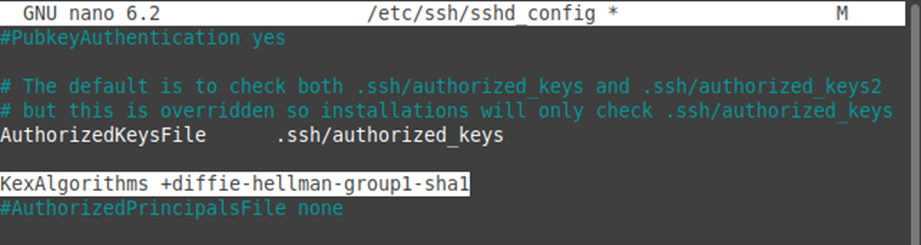 Después de iniciar sesión, cambiaremos el banner del cliente ssh para que apareciera como un cliente «PuTTY«, lo que obligó a habilitar el bit de compatibilidad «SSH_OLD_DHGEX» en el demonio ssh (sshd):